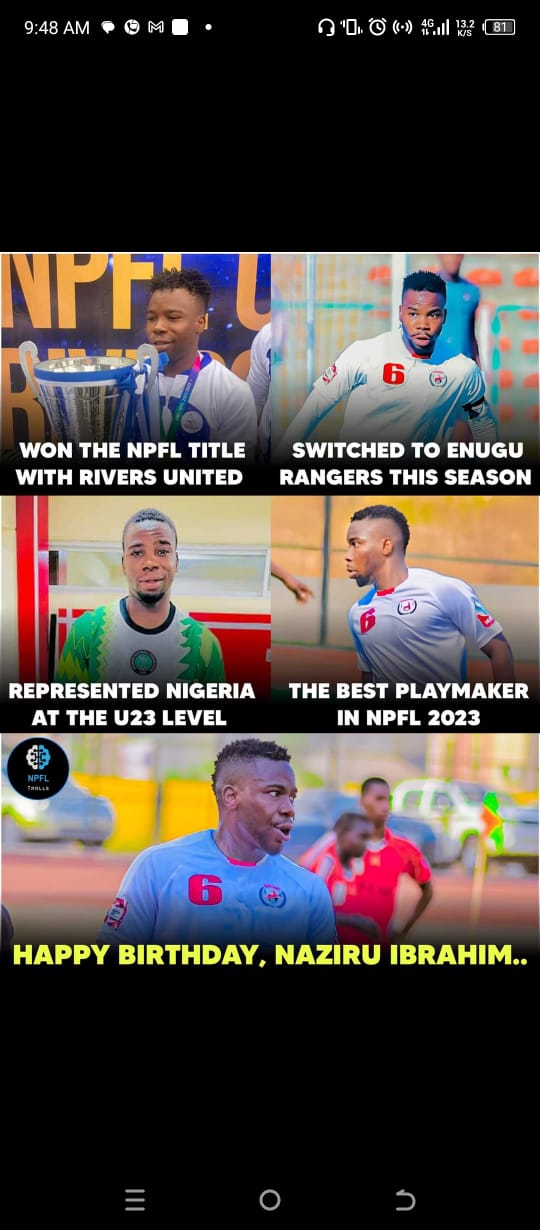 Naziru is a talented player who is currently making waves in Nigerian football with the league leaders, Enugu Rangers International. With just six games left in the NPFL23/24 season, they are on the verge of rewriting history by potentially clinching the NPFL championship.