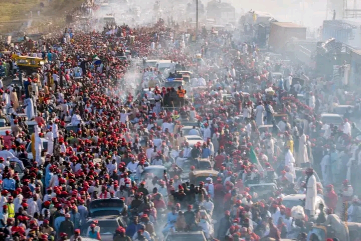 The Mammoth crowd greets the triumphant return of Governor Abba Kabir Yusuf to Kano after the Supreme Court verdict validated his victory in Abuja.