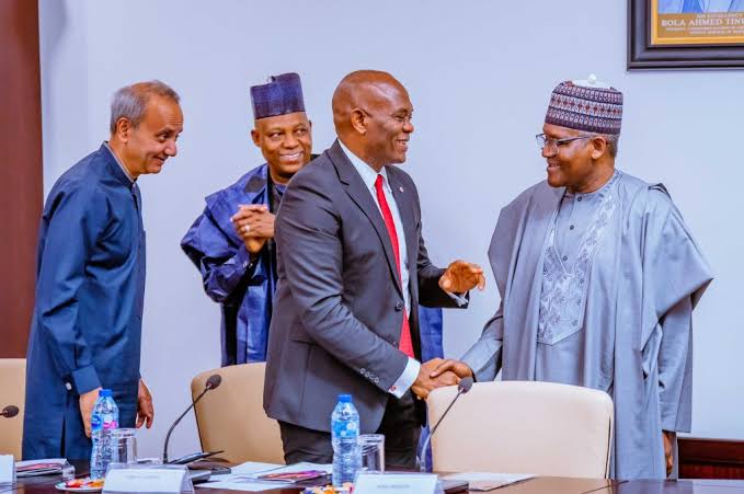 Bice-President Kashim Shettima is meeting with members of the private sector including the Chairman of the Dangote Group, Mr Aliko Dangote, and the founder of the Tony Elumelu Foundation, Mr Tony Elumelu.